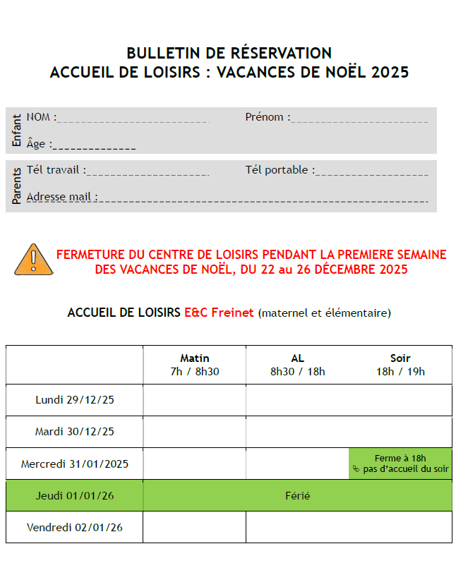 N’hésitez pas à vous connecter dans les délais pour réserver les jours de présence de votre enfant.
